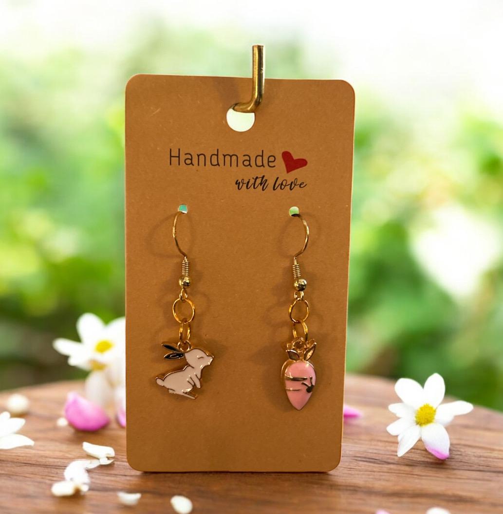 Add a touch of fun to your jewellery collection with these stunning handmade dangle earrings. Featuring adorable rabbit and carrot charms, these earrings are lightweight, versatile, and perfect for any occasion. Whether you’re dressing up for a formal event or adding a subtle statement to your everyday look, these earrings are a timeless choice.