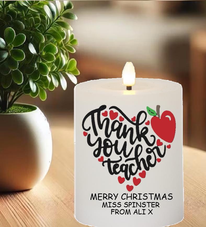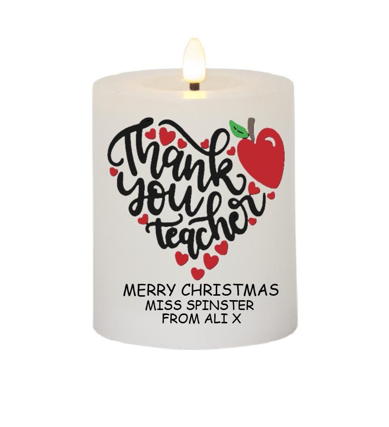 Surprise a special teacher with this delightful Personalised Teacher Candle. Perfect as a heartfelt gift, this candle is customised with the recipient's name and a personal message, making it a unique keepsake they'll cherish.