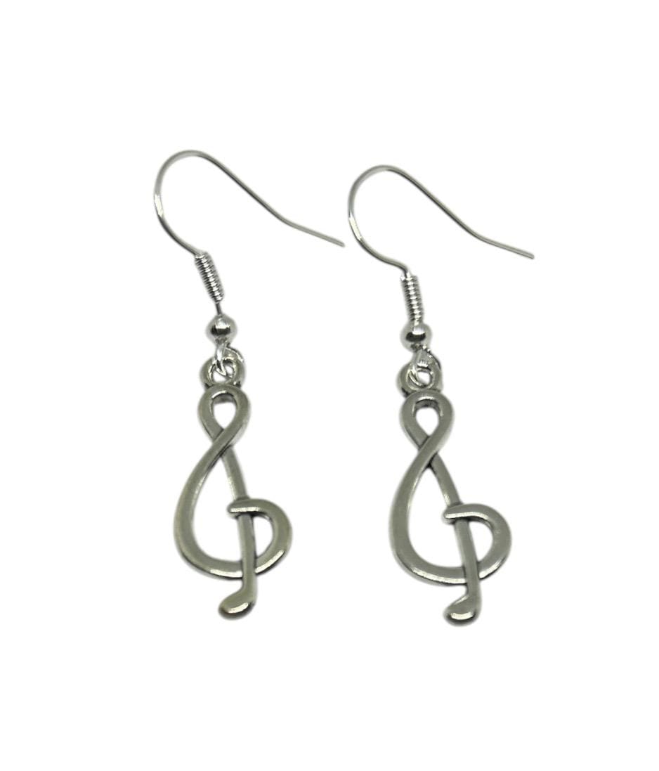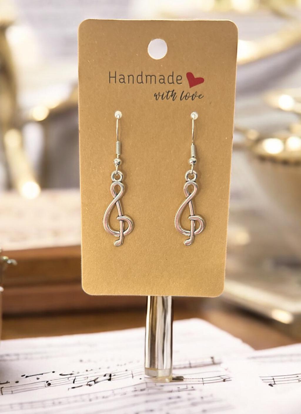 Celebrate your love for music with these Handmade Treble Clef Earrings – a perfect accessory for musicians, singers, teachers, and anyone who enjoys unique jewellery with a personal touch. These silver-tone dangle earrings feature the iconic treble clef design, making them an ideal gift for birthdays, concerts, recitals, or as a thoughtful present for a music teacher or student. Lightweight and easy to wear, they add a subtle yet stylish finish to any outfit. Each pair is crafted with care, ensuring you receive a truly special piece of jewellery that shows off your passion for music. These earrings are designed with care to provide a beautiful and long-lasting accessory. Treat yourself or a loved one to a pair today! Care Instructions: To maintain the quality of your earrings, avoid direct contact with water, perfumes, and lotions. Store them in a jewelry box or pouch in a cool, dry place when not in use.